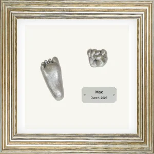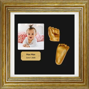 We create personalized baby hand and foot impression frames that beautifully preserve your little one's actual prints in stunning detail — a timeless keepsake designed with love in Sweden that captures those fleeting first moments forever.